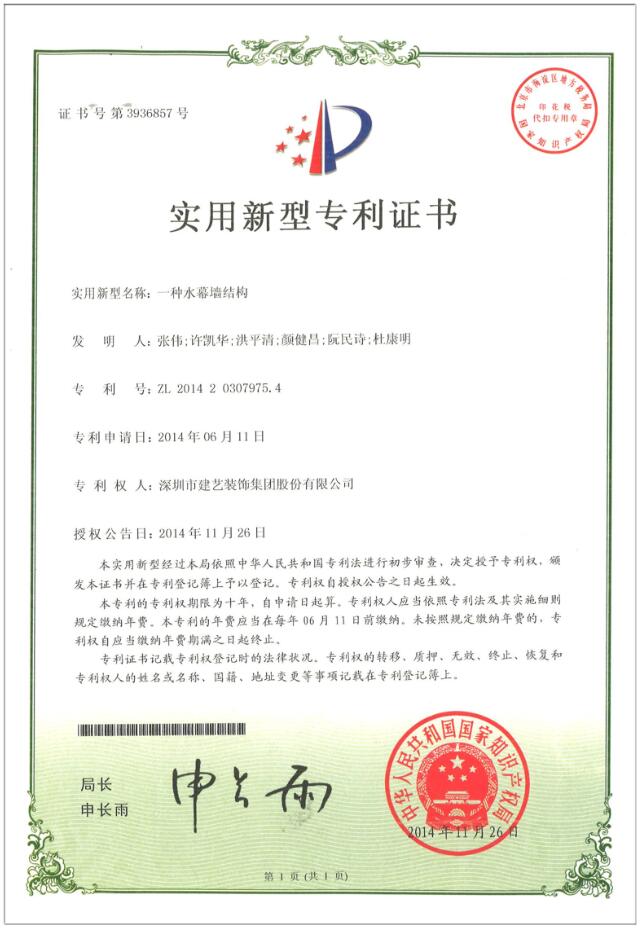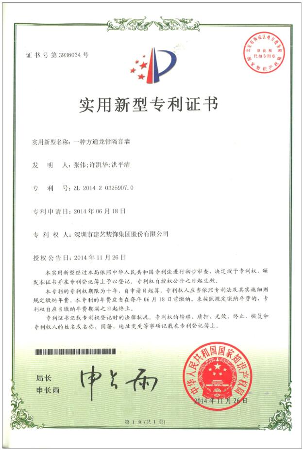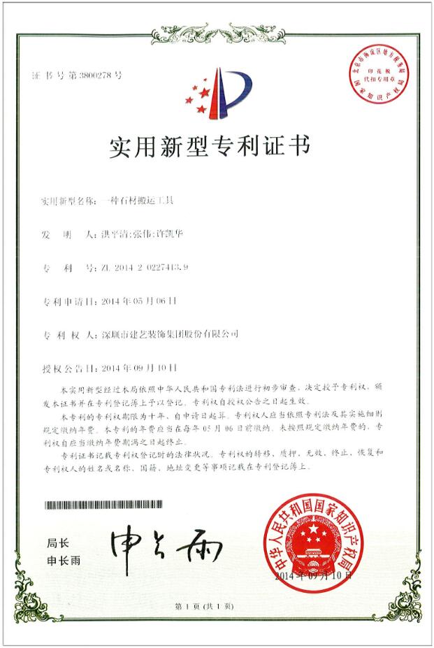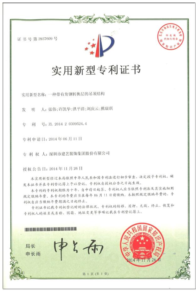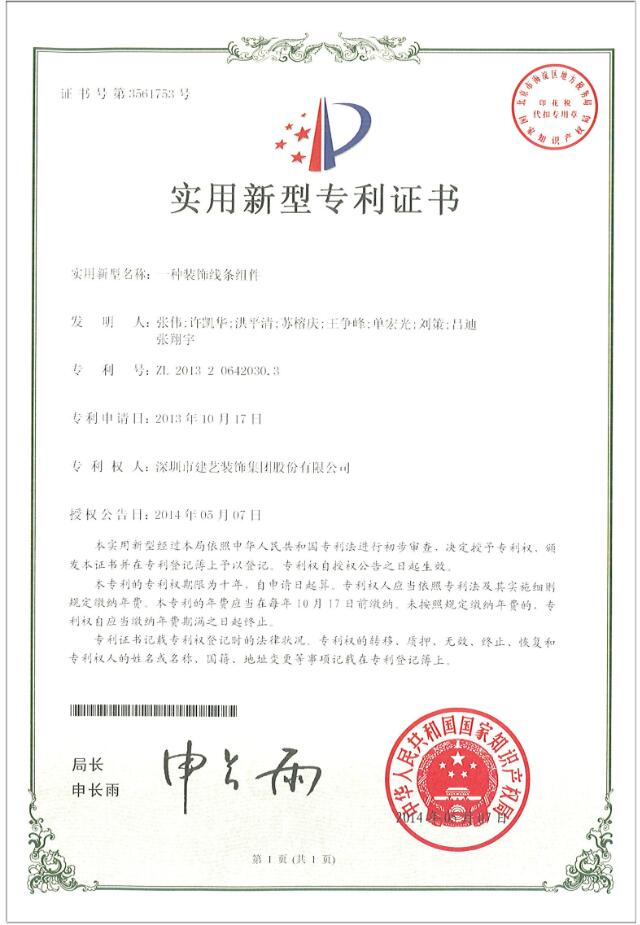 近日,建藝集團在知識產權領域再攀新高峰,集團自主研發的六項實用新型專利先后獲得國家知識產權局的正式授權。該六項專利分別為: