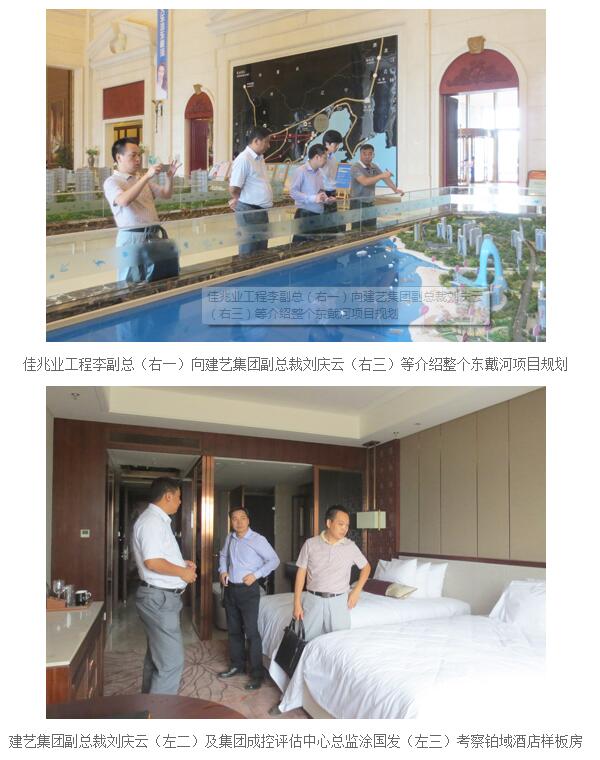日前,建藝集團副總裁劉慶云、工程中心總監韓佛、成控中心總監涂國發等領導前往遼寧省綏中東戴河,對佳兆業東戴河鉑域酒店項目進行考察。期間,佳兆業工程李副總向劉慶云副總裁一行詳細介紹了整個東戴河項目的規劃,劉慶云副總裁一行還對酒店樣板間等進行了參觀。