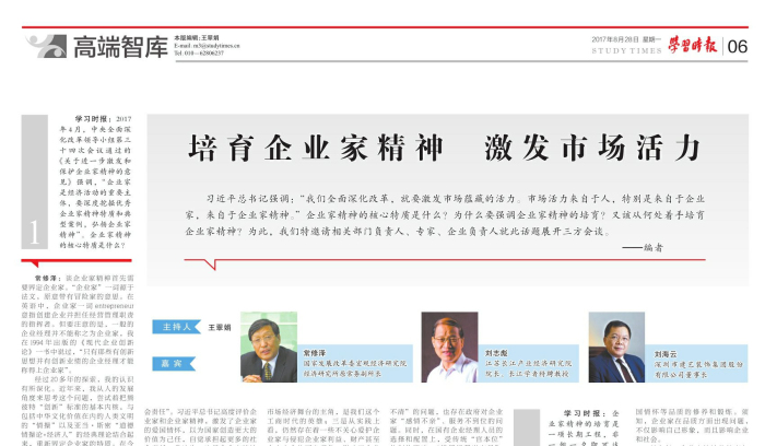 轉載中央黨?!秾W習時報》:培育企業家精神,激發市場活力