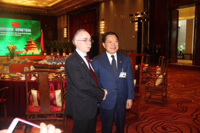 劉海云董事長與巴基斯坦駐華大使馬蘇德?哈立德及中國國際文化傳播中心主席龍宇翔等政要交流