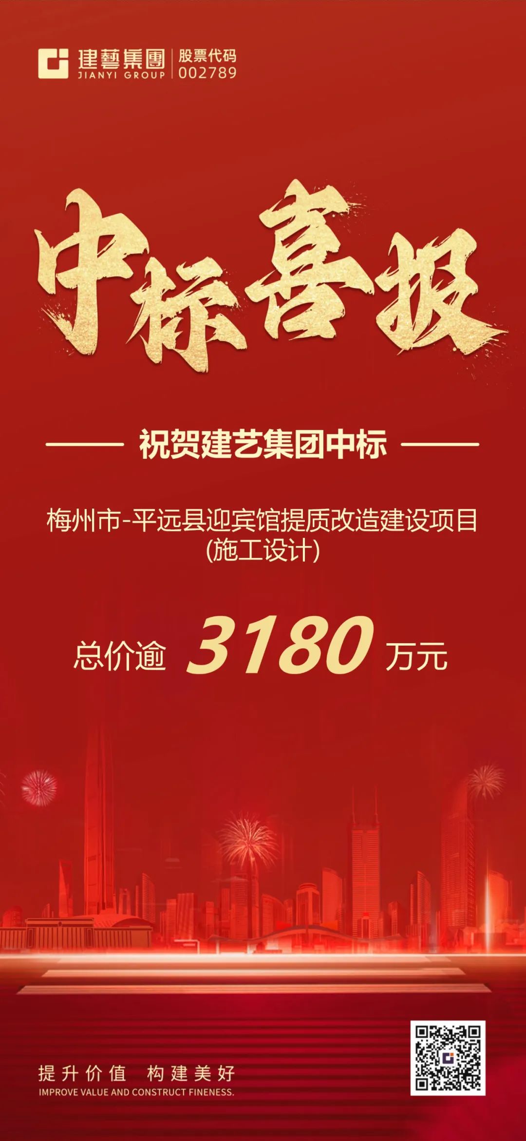近期,深圳市建藝裝飾集團股份有限公司及旗下子公司廣東建星建造集團有限公司、廣東粵明綠能科技有限公司中標捷報頻傳,接連中標多項項目,總價逾1.03億元。