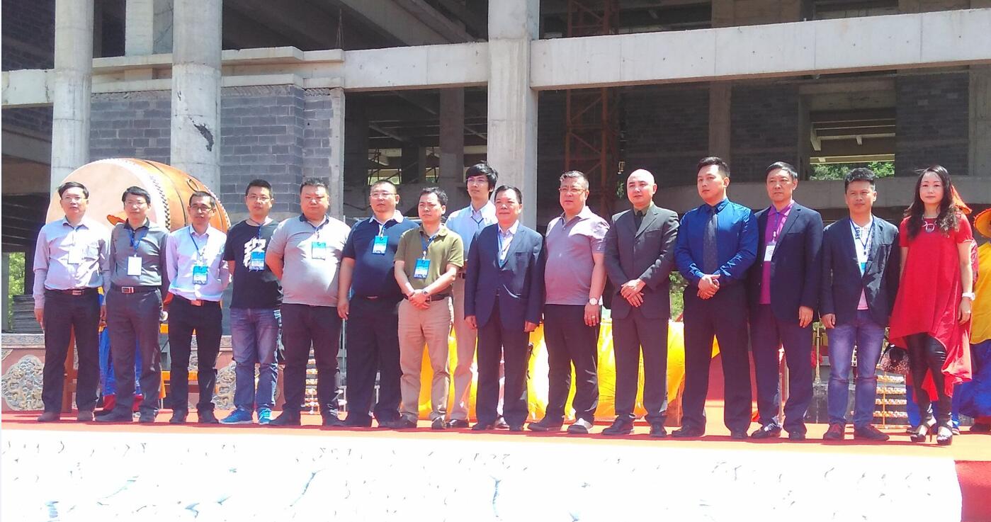 劉海云董事長(一排左八)與當?shù)卣I(lǐng)導一起參加慶典