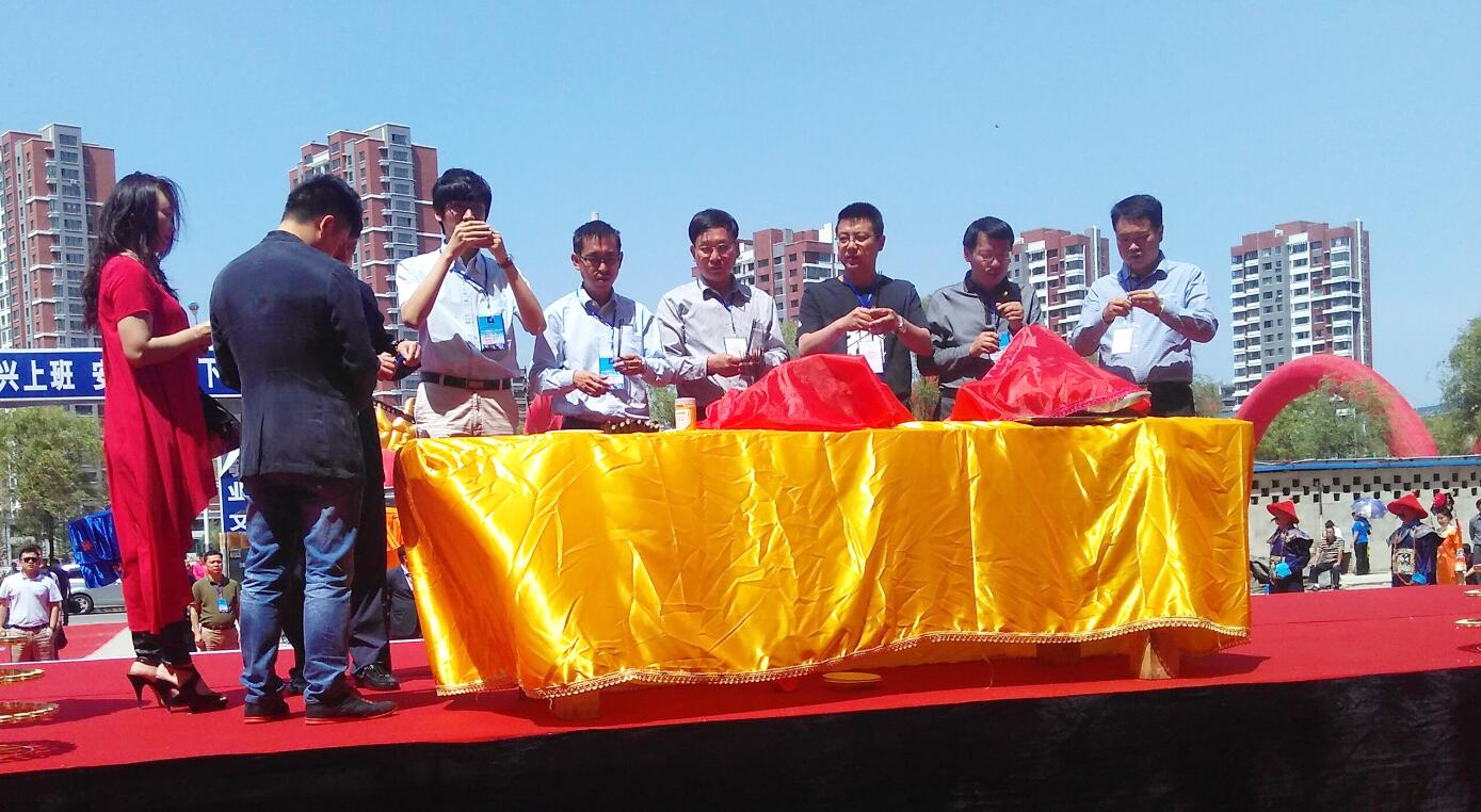 劉海云董事長(左三)等領(lǐng)導在慶典上拉索倫桿